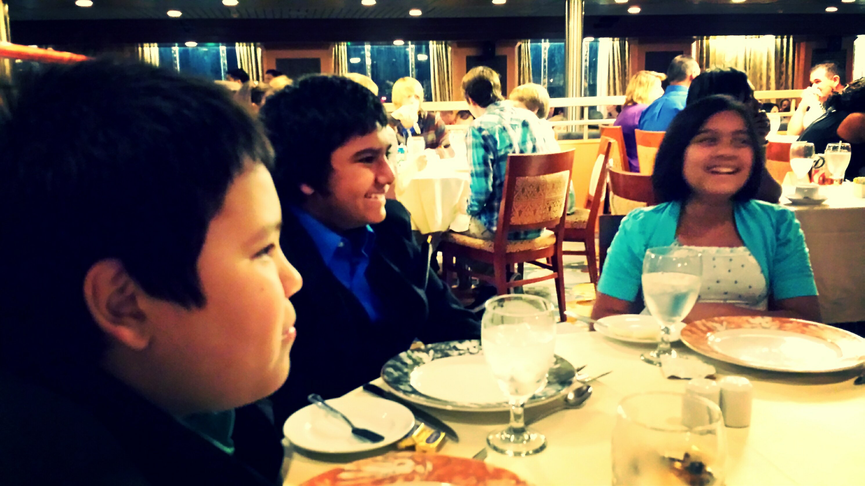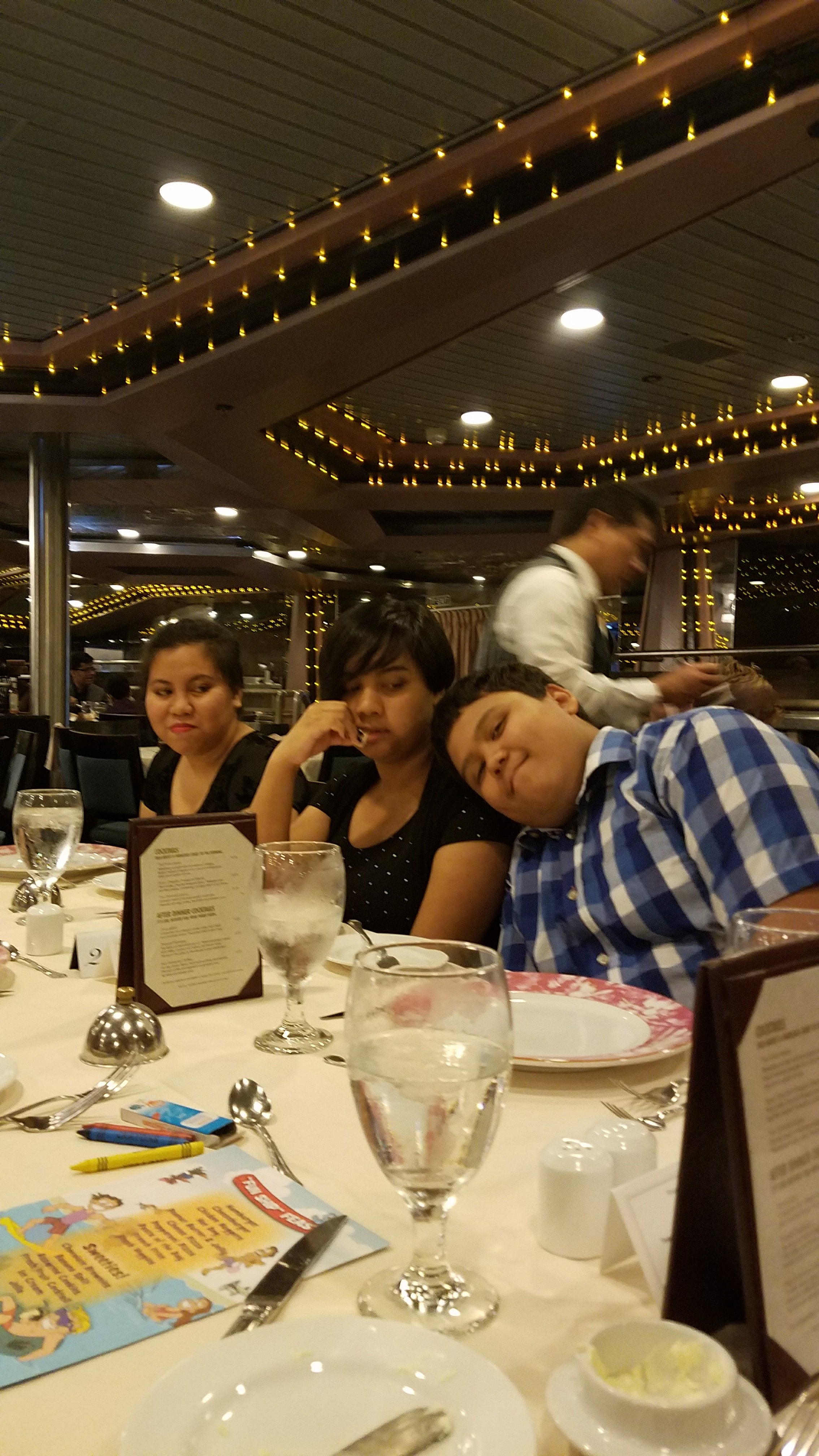 Kids enjoying dinner aboard Carnival Fantasy cruise to Cozumel, Mexico (2017)