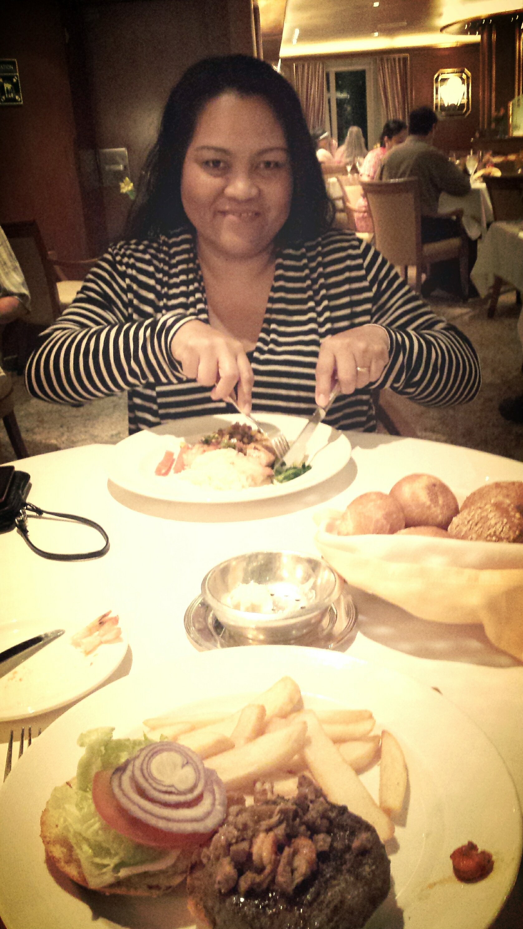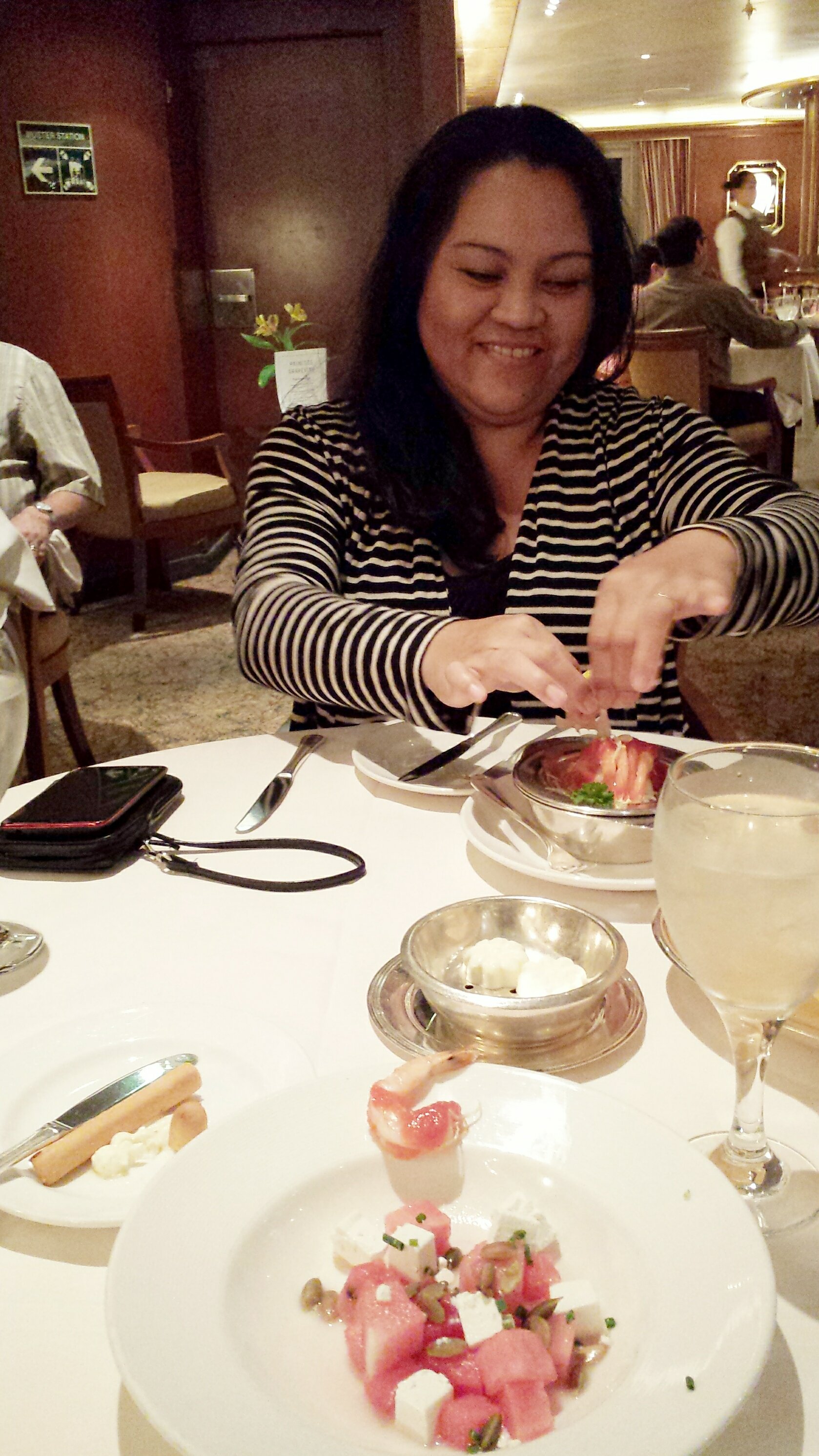 Glenda enjoying dinner aboard Caribbean Princess en route to Jamaica