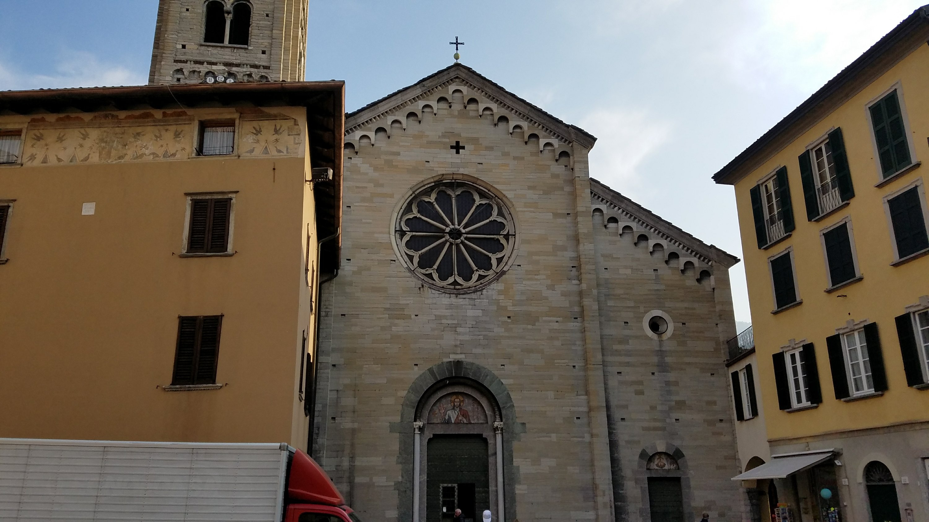 We visited this ancient church as part of a walking tour in 2017 on a trip to Lake Como. The square facing the church is the oldest surviving area of the city dating back to Roman times in the 5th century.