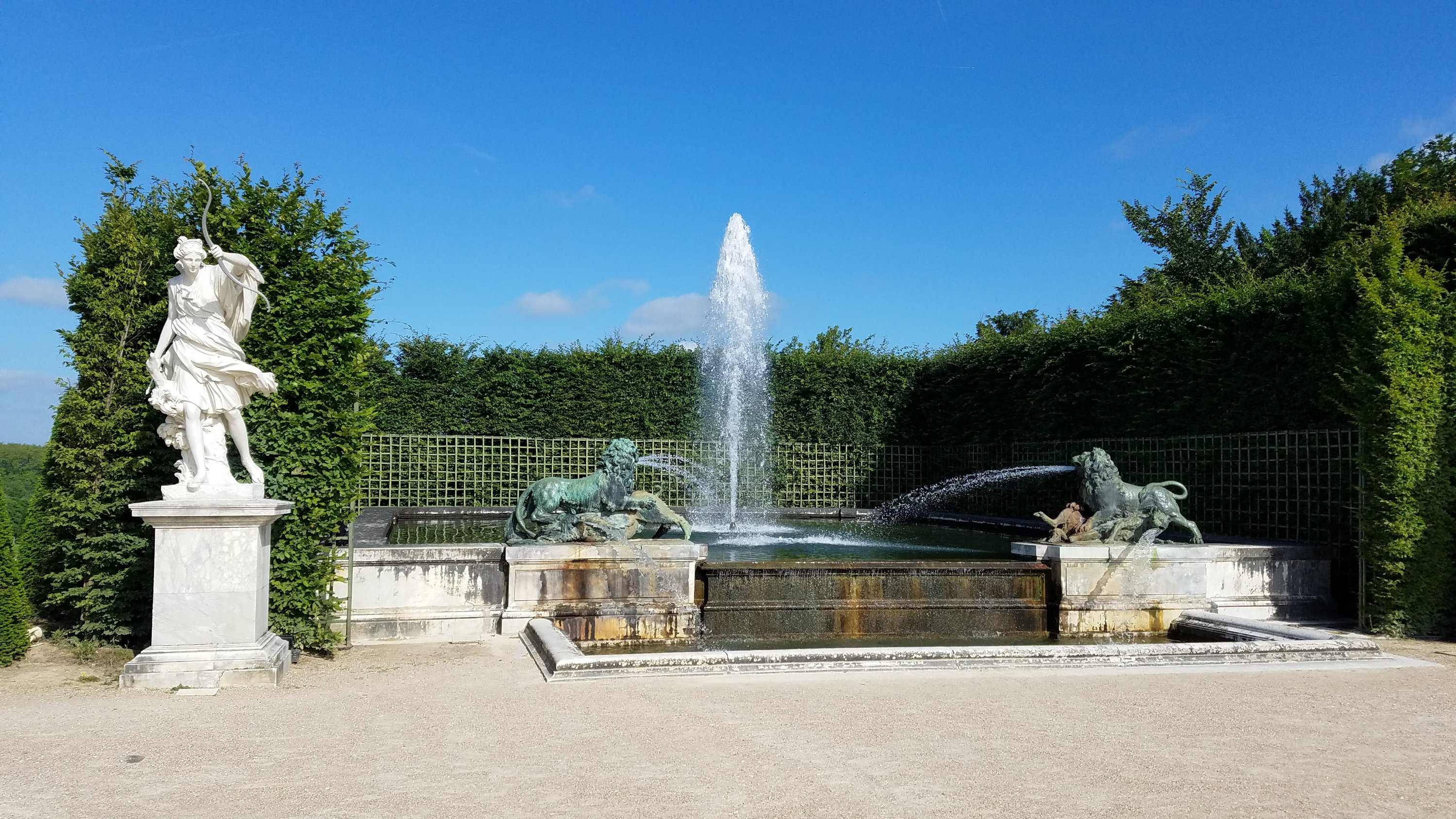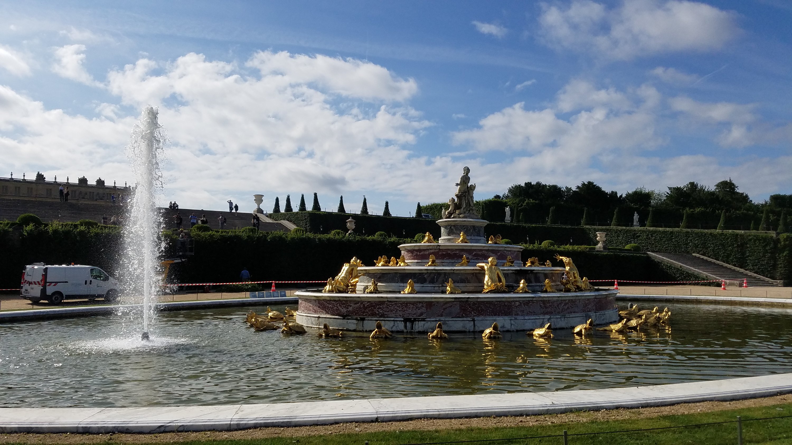 The Night Fountain comes alive with sprinkling water at certain days of the week. It acts as a connector from to the Latona fountain from the right end of the Water Parterre.