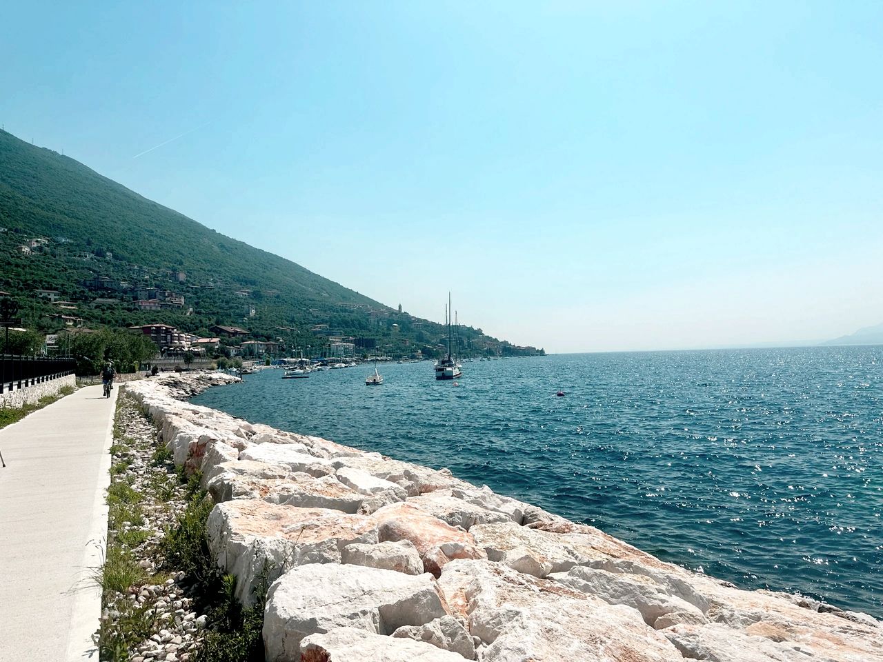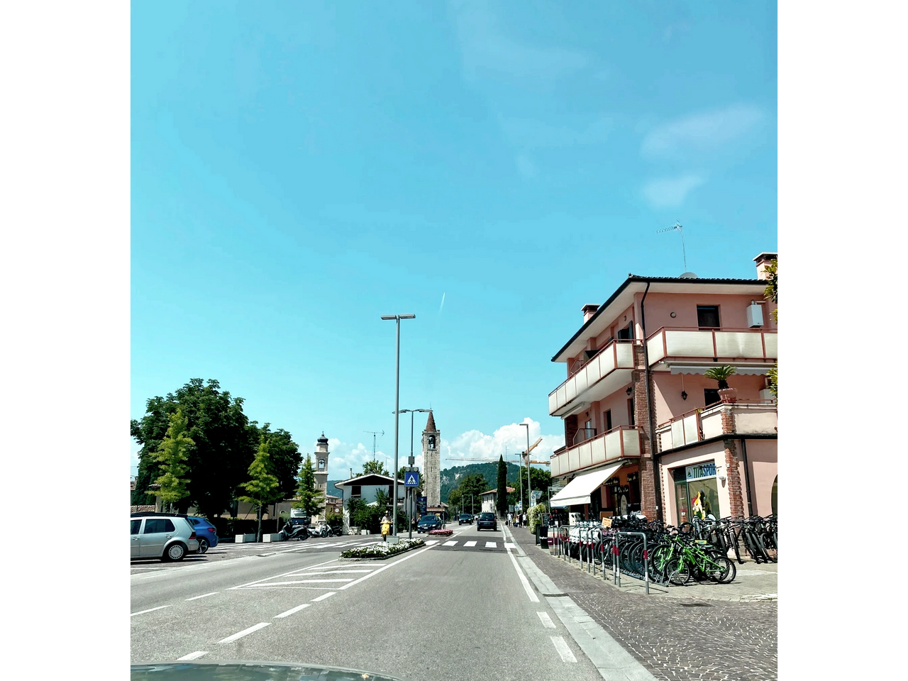 We rolled through Peschiera, a vibrant town bustling with a lively salsa of foot and pedal traffic. It was as if every cyclist in Italy had been summoned for a Tour de Garda. This was no mere traffic jam; it was a choreographed cycling extravaganza that could make Cirque du Soleil look like child’s play. In the face of this comic, yet exasperating, cyclone of cyclists, our Mini was nothing short of a ballerina, twirling and pirouetting through the melee.