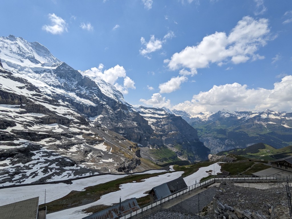 At the viewpoint, gateway to additional excursions are available as well as souvenir shops and restaurants. A nice photo op with Eiger as a backdrop is a must! Visitors can walk out to the viewing platform and hike even further up to get a close look at the Eiger Peak (elevation above 13800 ft.)