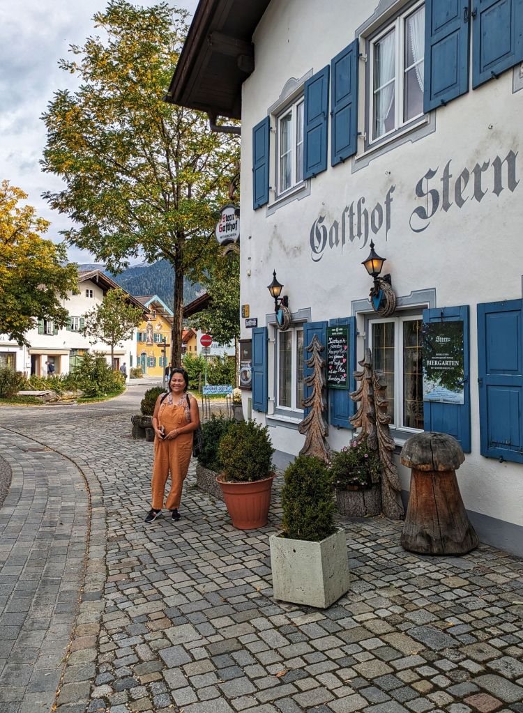 The most significant landmark in the village is the pink colored Roman Catholic church of Saints Peter and Paul, which is typical of the region. The church and many of the surrounding buildings, both businesses and private residences, are decorated with elaborate paintings on the exterior walls.
