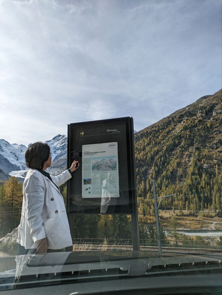 The Bernina Express, a popular tourist train, operates year-round between Chur and Tirano. The train crosses the pass west of the road at a slightly lower elevation. Near Ospizio Bernina at 2,253 metres (7,392 ft) – it is the highest adhesion railway route in Europe.