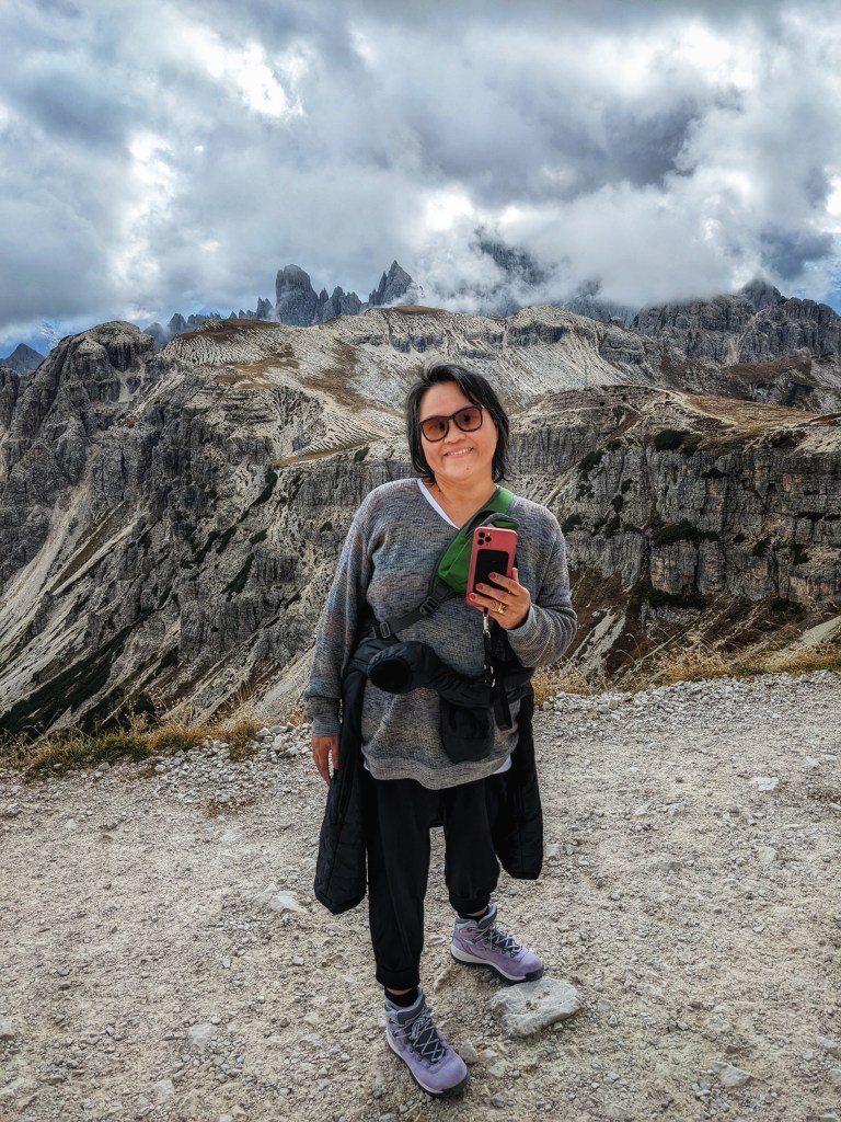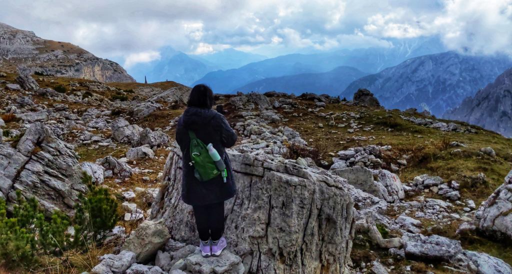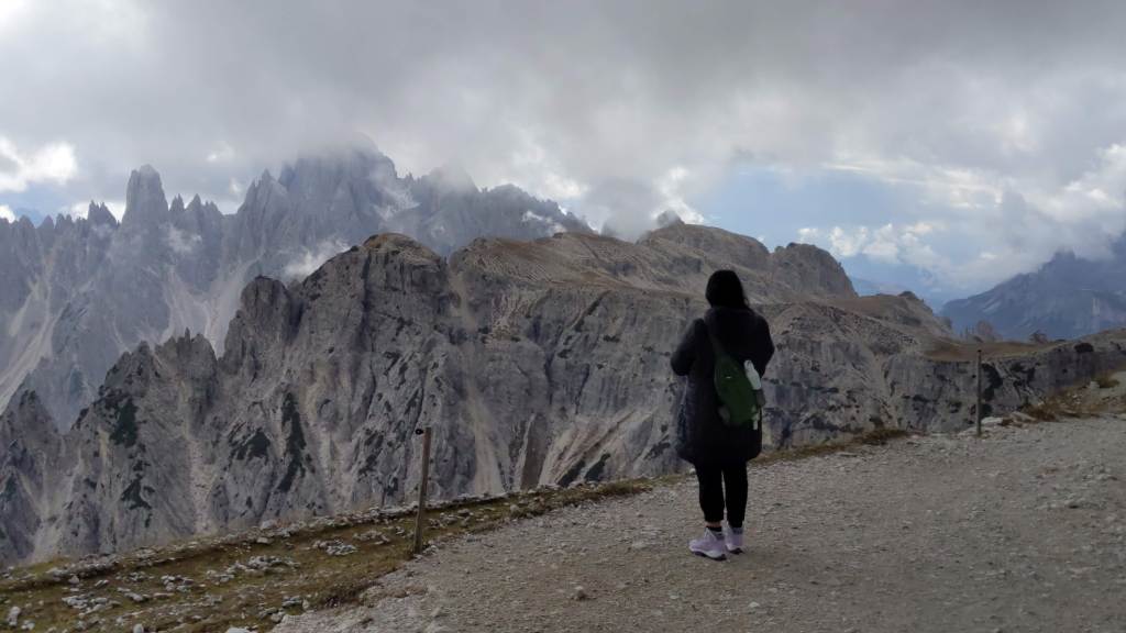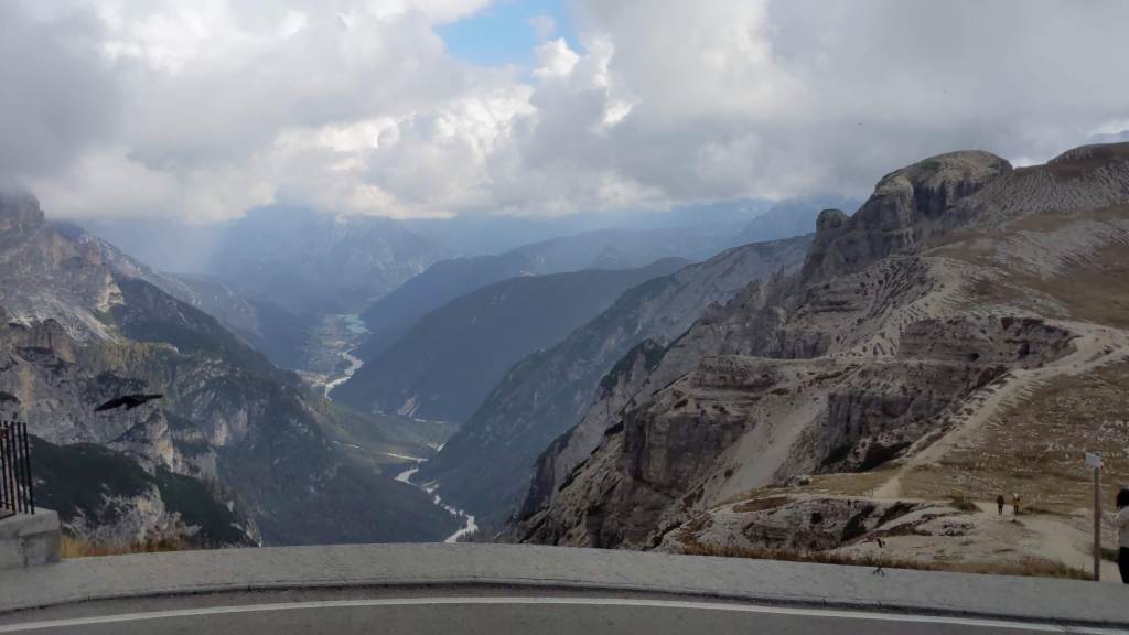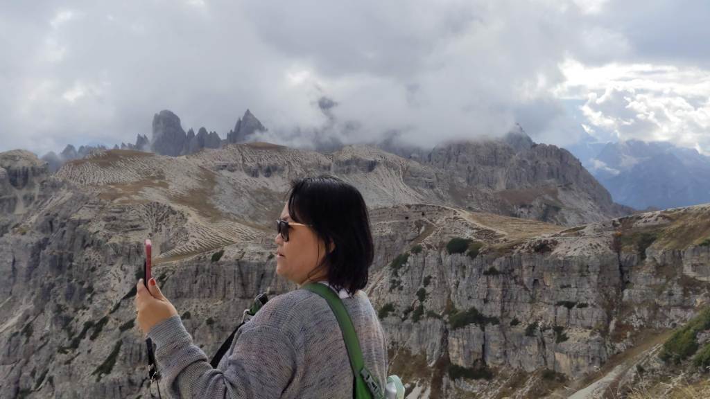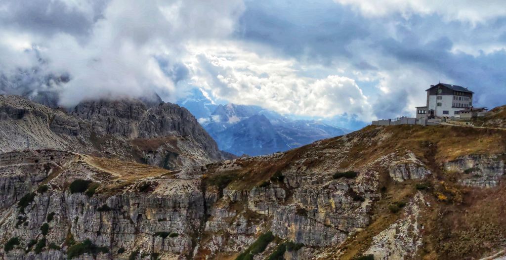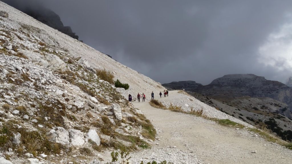 The weather can change pretty quickly at this altitude. As shown in the pictures below on the return trail to Rifugio Auronzo, we had to take of our heavy jackets as the clouds cleared and the temperature rose about 10-15 degree higher in less than an hour.