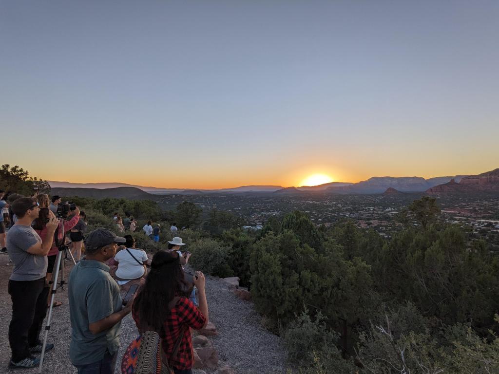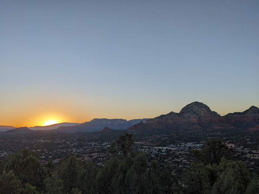 Sedona is a city in central Arizona at the foothill of the Rocky Mountain Range. Sedona’s main attraction is its array of red sandstone formations. The formations appear to glow in brilliant orange and red when illuminated by the rising or setting sun. The red rocks form a popular backdrop for many activities, ranging from spiritual pursuits to the hundreds of hiking and mountain biking trails. A popular place to see the sunset affect on the rock formations is Airport Mesa, as seen in the photo gallery below.