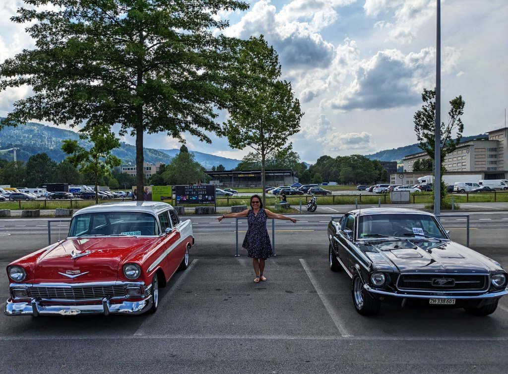 While most of the central parking garages in Lucerne were full, we scored unexpected parking near the city’s soccer stadium. Little did we know, a delightful surprise awaited! A classic car show was in full swing in the parking area, and as enthusiasts, we were absolutely thrilled. Row upon row of gleaming vintage vehicles captured our attention and admiration.