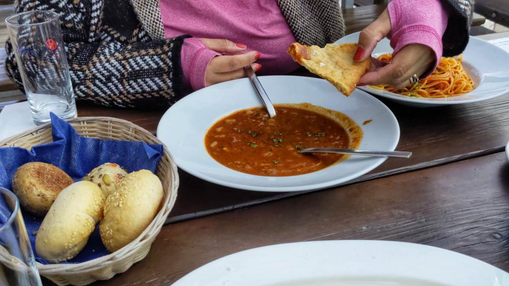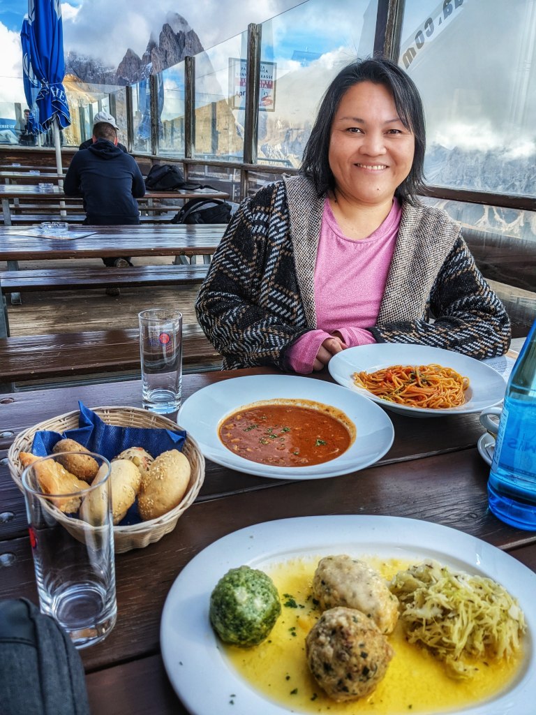 Traditional cuisine of the Italian Alps like Gulash and Tirolian cheese balls are available in the menu with various selection of breads.