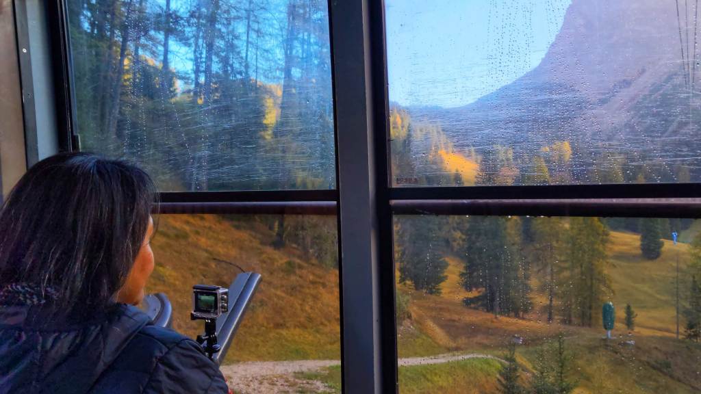 Once you drive to the cable car station in Ortisei (Urtijëi), we recommend parking at the covered lot (costs under 15 Euros in 2023). Then walk up the steps to the ticket counter and access to the gondola to purchase your ticket. Keep in mind, the line can get pretty long during peak summer time (between mid-June and August).