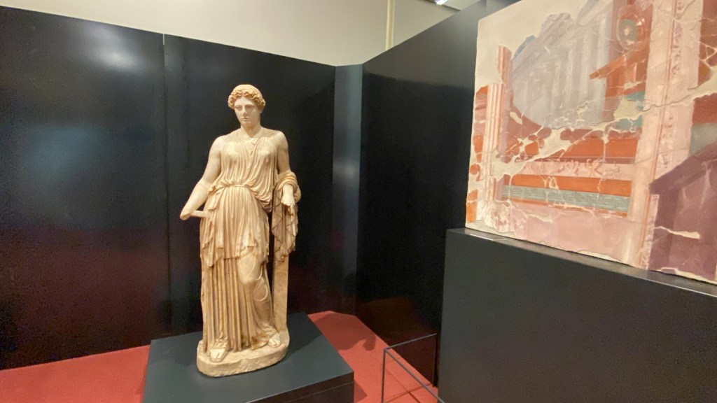 Smaller than Pompeii with a population of circa 5,000, Herculaneum was a wealthier town. It was a seaside retreat for the Roman elite, as reflected by the extraordinary density of luxurious houses featuring lavish use of colored marble cladding. Buildings of the ancient city include the Villa of the Papyri and the so-called “boat houses”, where the skeletal remains of at least 300 people were found.