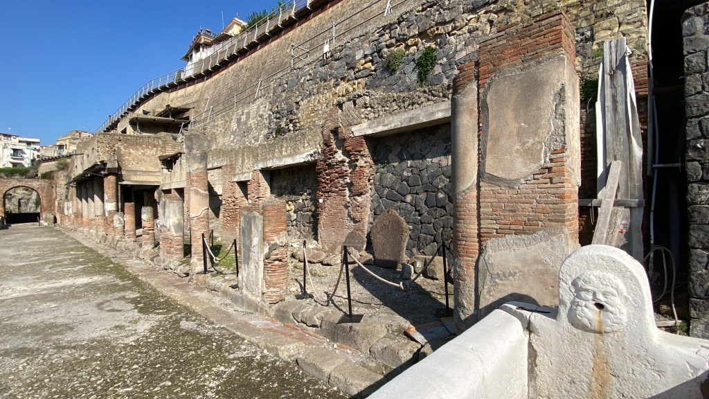Herculaneum archaeological park can be accessed via car from the highway connecting Naples, Pompeii and nearby Sorrento and Amalfi coast towns. However, traffic in metro naples can be often challenging and time consuming to navigate through. A better option is to take the “Vesuvio Loop” metro line which connects Napoli Centrale station to Herculaneum, Pompeii and other stops around Naples. The site is about 10 mins walk from the metro stop.