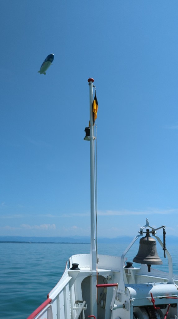 The ferry then turns to the western shore to the island of Mainau and finally reaching the city of Konstanz. On the trip we frequently encountered Zeppelin airships flying overhead on tours from Friedrichshafen and Konstanz.