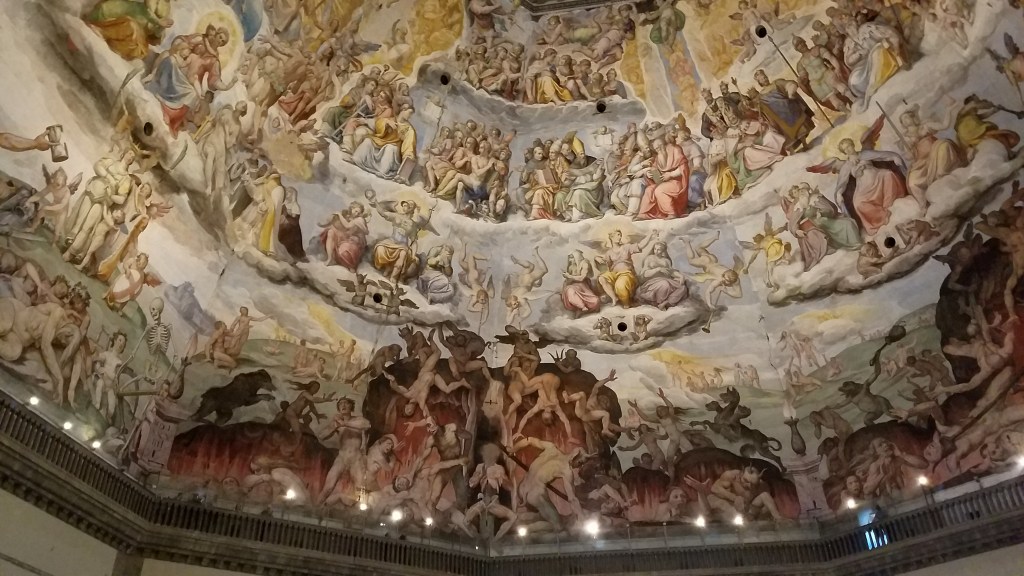 One of the most rewarding experience in Florence is exploring the Duomo. And you can climb all the way to the top of the 454 stairs! It’s a bit of a squeeze in places, but those narrow stairs are part of the adventure. Halfway up, marvel at the dome’s interior, painted with Vasari’s stunning and slightly terrifying vision of hell from Dante’s Inferno.