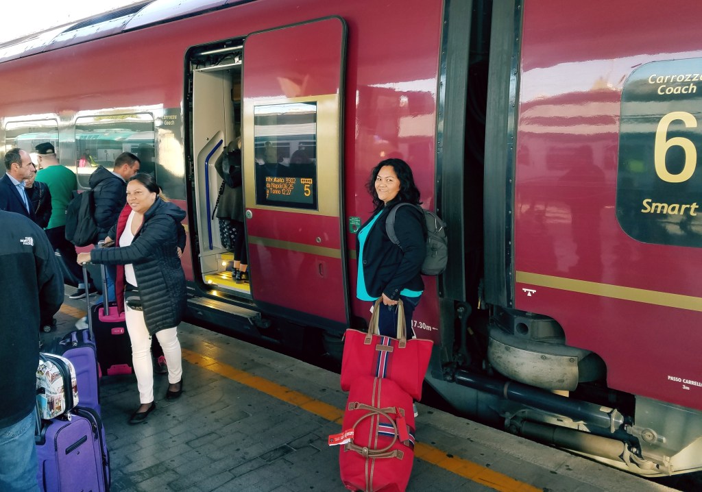 So from Milan to Venice, for a direct train service on Train Italia, you can buy the ticket beforehand, via online (recommended about 2-4 weeks in advance for popular lines line Milan-to-Venice) or even at the station. Then you go to the platform and look on the display board, your train’s number. And it will say from what city to what city and the platform number. About 20 to 25 minutes before your train departure, you’re going to see your line, but you may not see a platform yet. Do not panic because there is only a limited number of trains that can occupy the platform! Typically 10 to 15 minutes before departure you see the platform number and then you can just go to the right platform and board the train. Also make sure you know your carriage number so you don’t have to walk through a bunch of them passing other passengers. You can download your ticket on the phone, when purchased online, which is a convenient way to get it checked by the train conductor who pays everyone a visit once the train has departed the station.