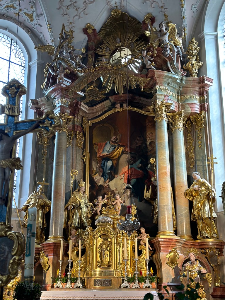 A little further on, Ettal Abbey rose from the valley like a miracle of geometry- white, green, and gold, framed by orange hills. Inside, time dripped slower. The dome shimmered with frescoes, and the scent of wax and incense clung to the silence. It was October, and even the air felt reverent.