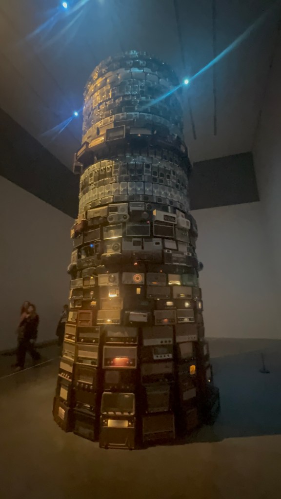 I found two rooms that stuck with me. First was Babel—a huge tower made of hundreds of old, crappy analogue radios stacked to the ceiling. They were all turned on, tuned to different stations, but kept at a low whisper. It was a weird, blue-lit room filled with global static. It felt like standing inside a giant, humming brain.